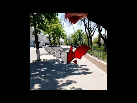 This flying heart suncatcher is made of stained glass that forms two distinct heart shapes. One represents an angel and the other - a devil. The combination of the angel and devil hearts in this window hanging creates a contrast that points out the duality of human nature and the eternal struggle between good and evil. Joined together they give us hope that we can overcome everything in our life.