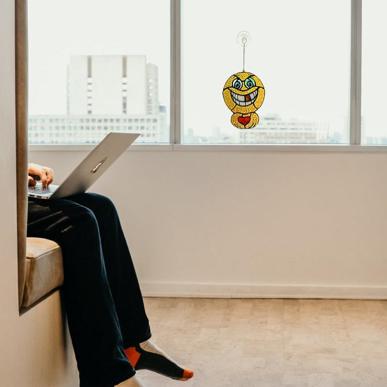 Brighten up any room with this cheerful smiley face stained glass piece, featuring a heart design that adds a touch of positivity and warmth to your home. Perfect for window decor, this fun and colorful hanging emoji is an ideal gift for spreading joy and positive vibes.
